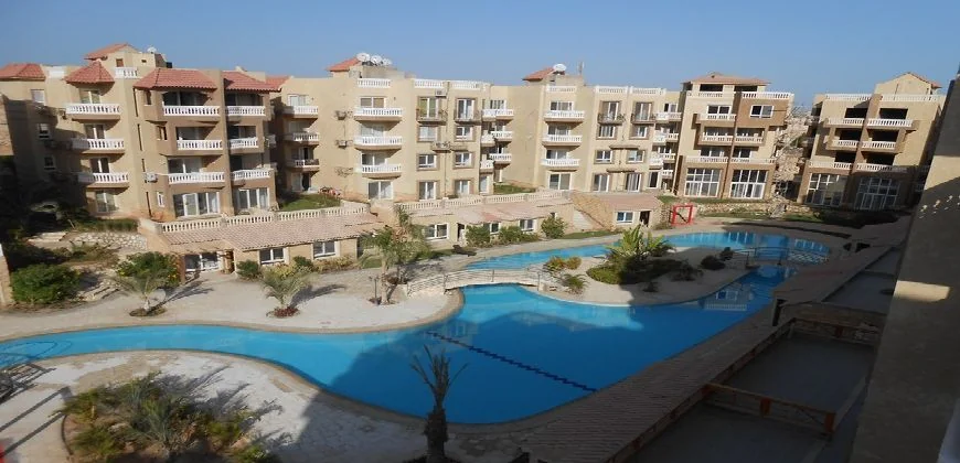 lovely spacious and light apartment with pool view for rent in beautifully maintained compound with meandering pool and small aqua park.